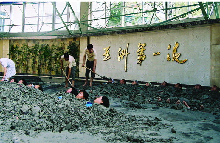 这里是迄今为止亚洲唯一的温度高达45℃的湿润泥土。经国家地质部门考证,汤岗子热矿泥的形成是在几亿年前的火山爆发后火山灰的堆积物,经过近亿年的温泉滋养等理化作用而形成的,既有颗粒均匀的优点,又有粘土柔软细腻的长处。对治疗风湿、类风湿、关节病、神经衰弱、软组织损伤及解除疲劳等有奇特的疗效。它还广泛用于皮肤的美容和护理。 汤岗子温泉汩汩而涌,晶莹透澈,水温高达72℃,尤为可贵的是,水中含有20余种微量元素,对人体有抗炎、止痛改善血液循环恢复肌体及关节功能和调节免疫等功效。