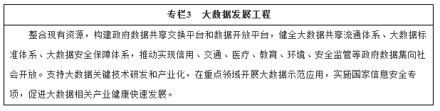 (三)实施国家大数据战略。落实大数据发展行动纲要,全面推进重点领域大数据高效采集、有效整合、公开共享和应用拓展,完善监督管理制度,强化安全保障,推动相关产业创新发展。