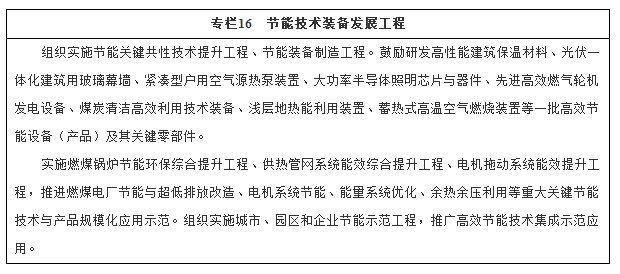 大力提升高效节能装备技术及应用水平。鼓励研发高效节能设备(产品)及关键零部件,加大示范推广力度,加速推动降低综合成本。制修订强制性能效和能耗限额标准,加快节能科技成果转化应用。发布节能产品和技术推广目录,完善节能产品政府采购政策,推动提高节能产品市场占有率。完善能效标识制度和节能产品认证制度,在工业、建筑、交通和消费品等领域实施能效领跑者制度,推动用能企业和产品制造商跨越式提高能效。