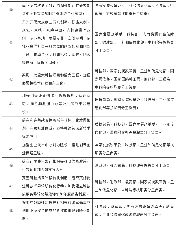 强化公共创新体系建设。实施一批重大科技项目和重大工程,加强颠覆性技术研发和产业化。创新重大项目组织实施方式,探索实行项目决策、执行、评价、监督相对分开的组织管理机制。构建企业主导、政产学研用相结合的产业技术创新联盟,支持建设关键技术研发平台,在重点产业领域采取新机制建立一批产业创新中心。围绕重点领域创新发展需求,统筹部署国家重大科技基础设施等创新平台建设,加强设施和平台开放共享。按照科研基地优化布局统筹部署,建设一批国家技术创新中心,支撑引领战略性新兴产业发展。加强相关计量测试、检验检测、认证认可、知识和数据中心等公共服务平台建设。成立战略性新兴产业计量科技创新联盟,加强认证认可创新。落实和完善战略性新兴产业标准化发展规划,完善标准体系,支持关键领域新技术标准应用。