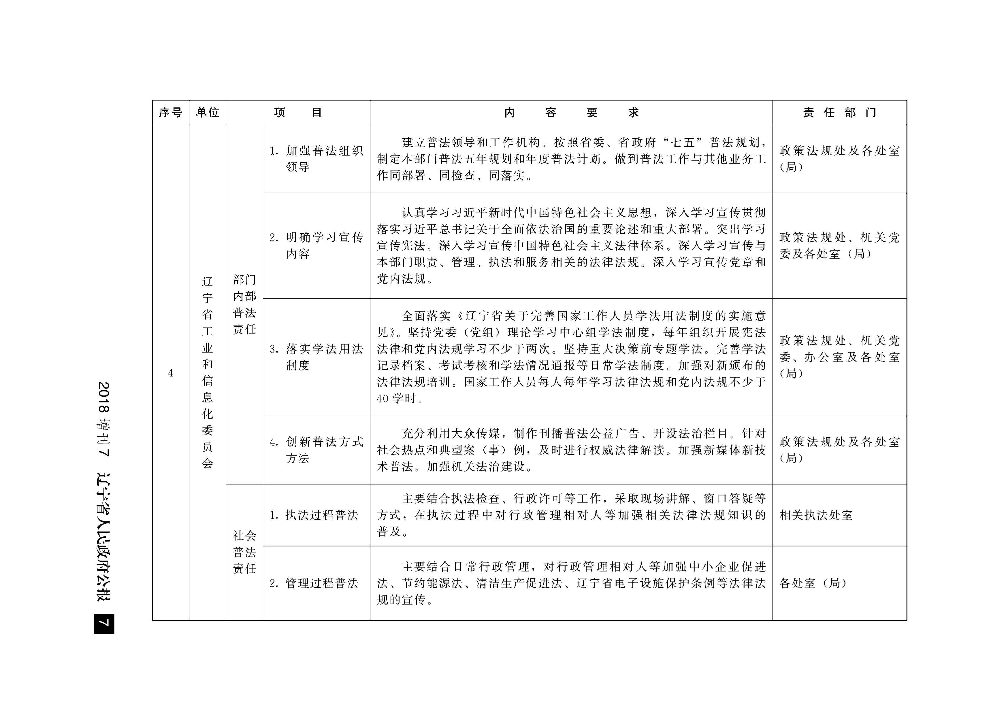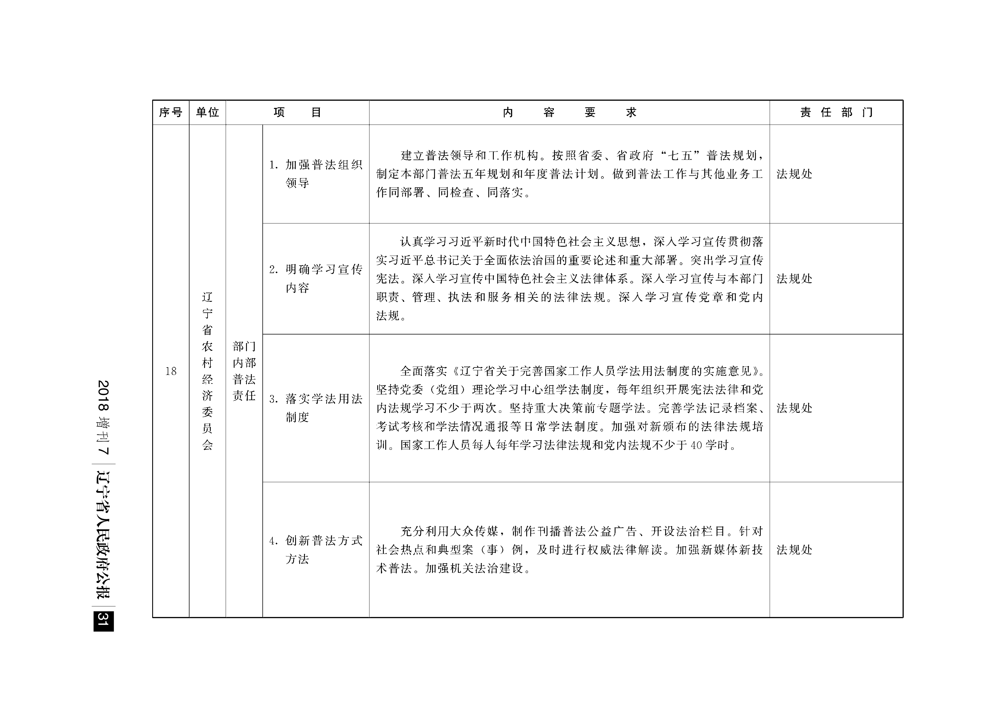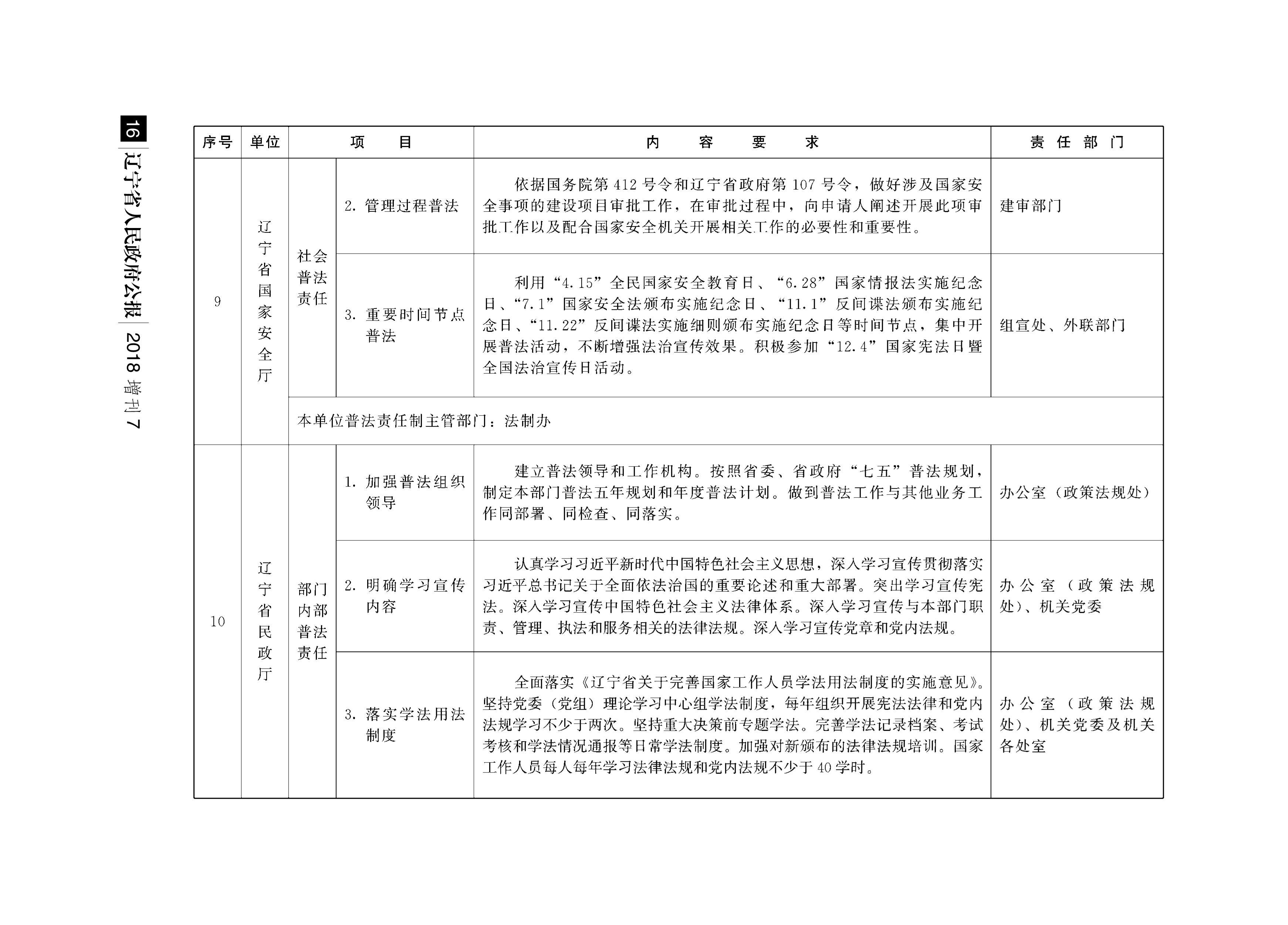 建立普法责任清单制度,是贯彻落实国家机关“谁执法谁普法”普法责任制的重要举措。普法责任清单明确了国家机关应当承普法工作责任,是开展普法工作的重要遵循。国家机关要把普法作为法治辽宁、平安辽宁建设的基础性工作,切实纳入本部门本单位工作总体安排,做到与其他业务工作同部署、同检查、同落实,努力在全社会形成尊法学法守法用法的浓厚氛围。按照普法责任制要求,建立健全普法领导和工作机构,明确普法任务和工作要求,制定普法中长期规划和年度普法计划,明确责任部门、责任人员和时限,并根据相关法律法规、规范性文件的调整,及时进行补充完善。