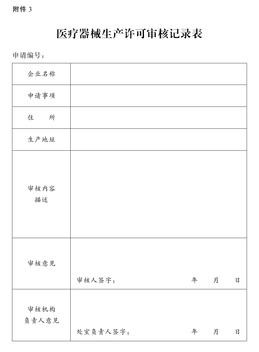 3.医疗器械生产许可审核记录表