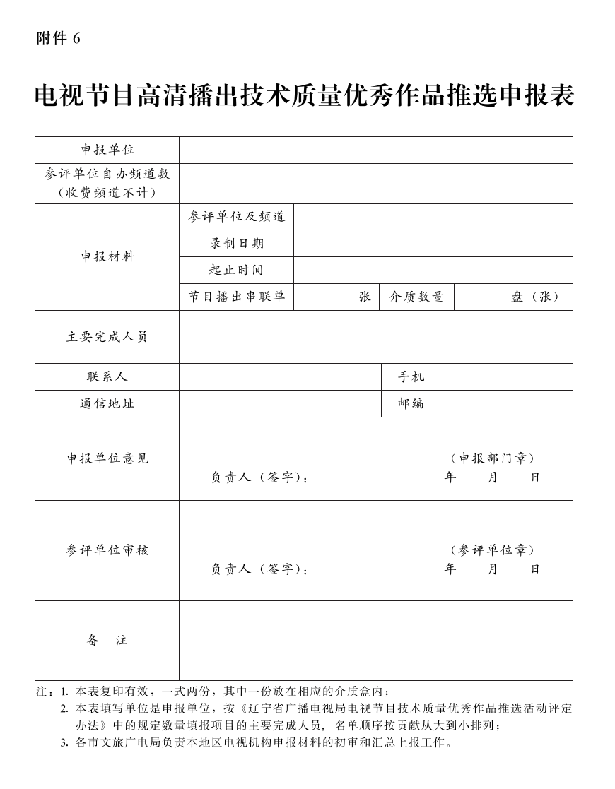 6.电视节目高清播出技术质量优秀作品推选申报表
