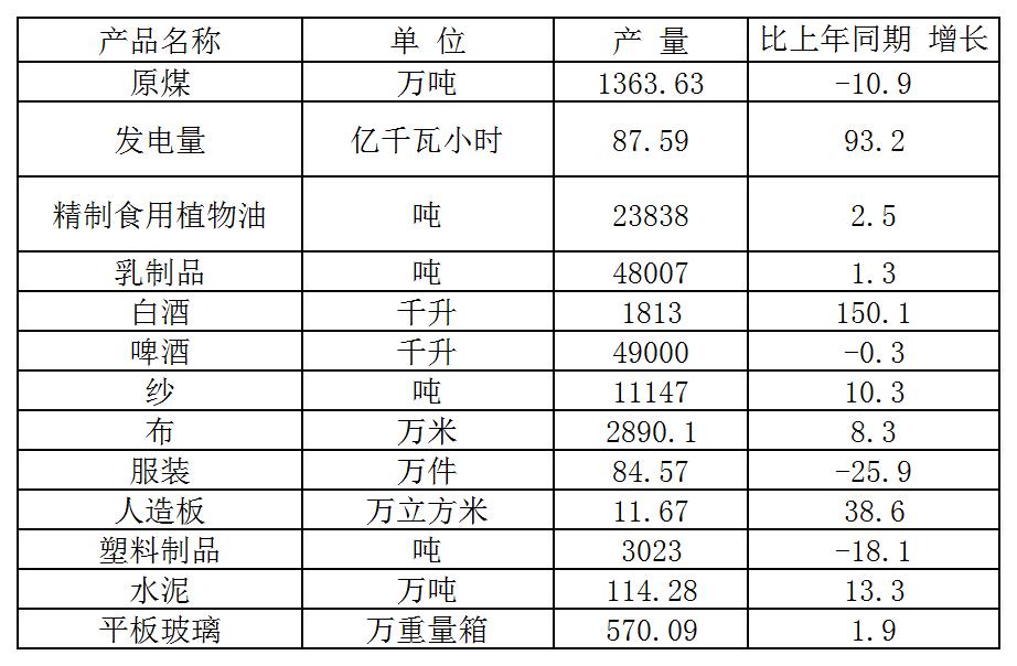 表1工业主要产品产量