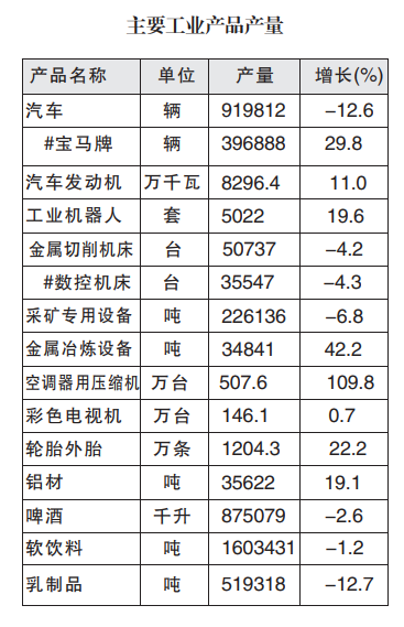 全年规模以上工业增加值1276.4亿元,比上年增长2.8%。其中,重工业增加值1046.1亿元,增长2.7%;轻工业增加值230.3亿元,增长3.2%。装备制造业实现增加值901亿元,增长4.0%,占全市规模以上工业增加值70.6%,比上年提高5.6个百分点。工业出口产品交货值224亿元,增长23.4%。