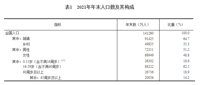 [10]2021年年末,0-14岁(含不满15周岁)人口为24678万人,15-59岁(含不满60周岁)人口为89846万人。