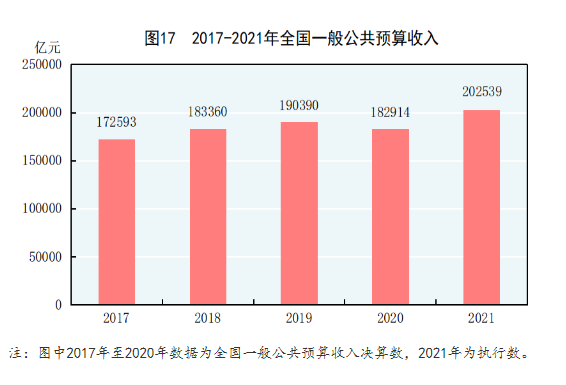 全年全国一般公共预算收入202539亿元,比上年增长10.7%,其中税收收入172731亿元,增长11.9%。全国一般公共预算支出246322亿元,比上年增长0.3%。全年新增减税降费约1.1万亿元。